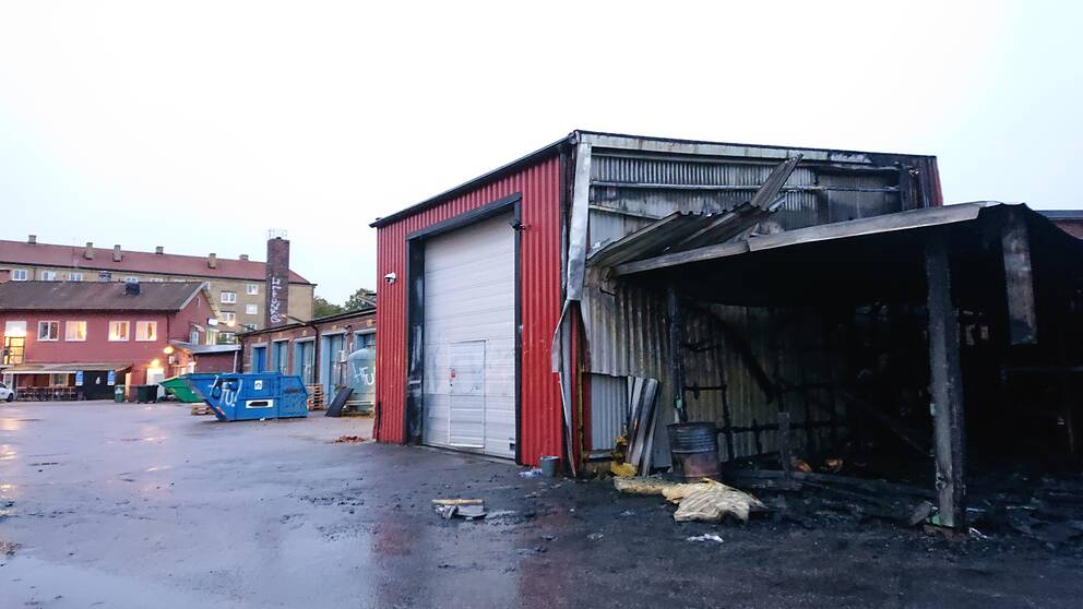 01:06 kl 23:00 på söndagskvällen larmades räddningstjänsten till en brand i ett fristående sophus på norra köpmangatan i gävle.